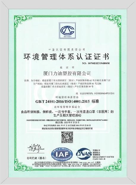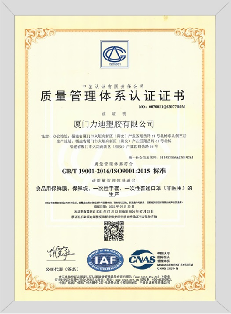 Xiamen Lidi Plastic Co., Ltd., founded in 2005, is a modern enterprise with a complete industrial chain and a professional R&D and design team, production, sales and brand operation. The company's main business: disposable catering consumables and disposable medical consumables; specific products include: disposable PE gloves, fresh-keeping bags, plastic wrap, environmentally friendly garbage bags, stretch film, PS aviation cups, paper cups, tinfoil and medical protective masks. Medical surgical masks, medical band-aids, medical dressings, medical gloves and other disposable consumables. The workshop is planned and designed in accordance with the national "QS standardization", with an operating area of 35,000+ square meters, more than 400 professional production lines, and a monthly output of more than 3,900 tons.