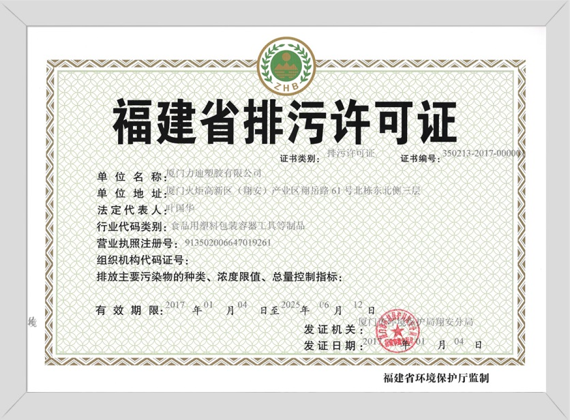 2016Passed Fujian Provincial Pollutant Discharge Permit Certification