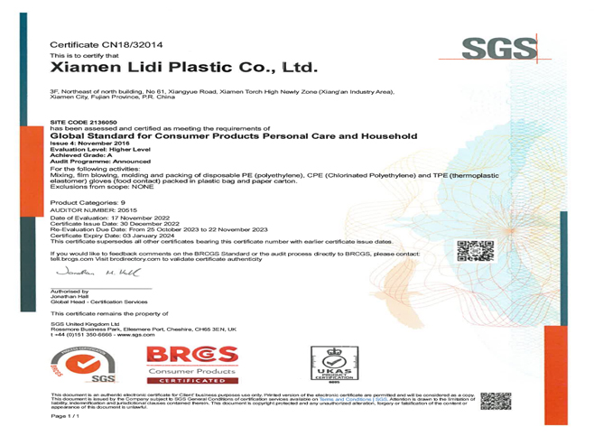 Xiamen Lidi Plastic Co., Ltd., founded in 2005, is a modern enterprise with a complete industrial chain and a professional R&D and design team, production, sales and brand operation. The company's main business: disposable catering consumables and disposable medical consumables; specific products include: disposable PE gloves, fresh-keeping bags, plastic wrap, environmentally friendly garbage bags, stretch film, PS aviation cups, paper cups, tinfoil and medical protective masks. Medical surgical masks, medical band-aids, medical dressings, medical gloves and other disposable consumables. The workshop is planned and designed in accordance with the national "QS standardization", with an operating area of 35,000+ square meters, more than 400 professional production lines, and a monthly output of more than 3,900 tons.